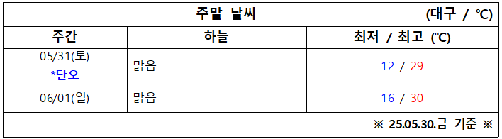 5월 5주 차 대구·경북 주말 ‘날씨 체크’