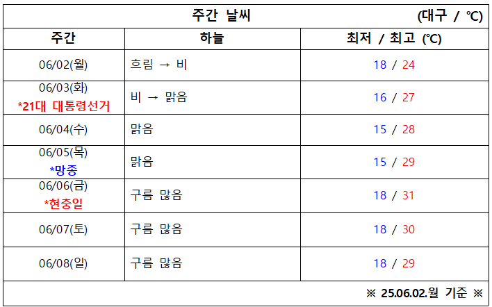 6월 1주 차 대구·경북 ‘날씨 체크’ 시작합니다.