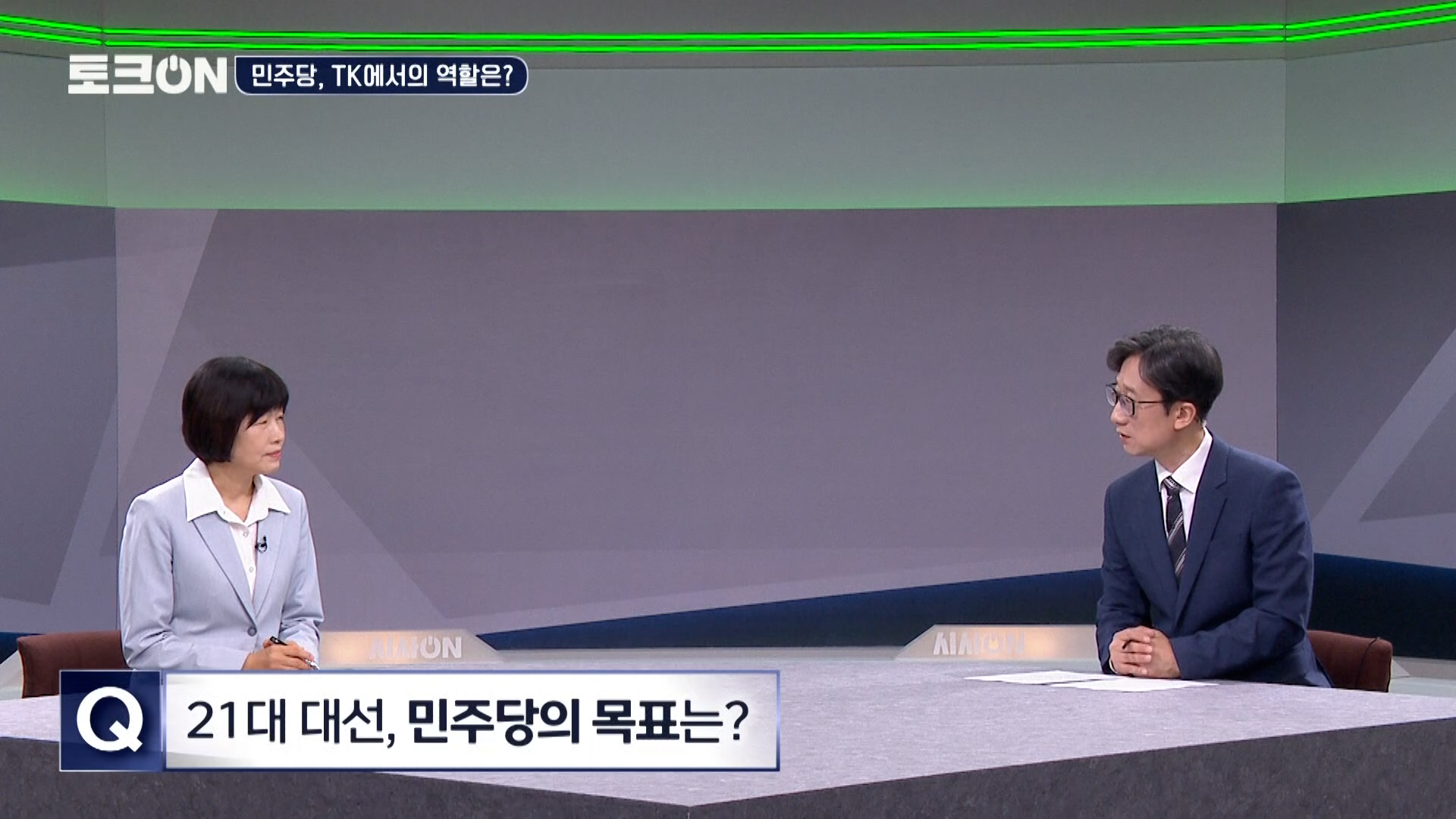 제21대 대통령 선거를 통해 여야 지형은 새롭게 재편됐습니다. 더불어민주당이 집권 여당이 되었고, 국민의힘은 야당의 길을 가게 됐습니다. 대선을 앞두고 대구·경북에서 이재명 후보가 30%를 넘지 않겠냐는 전망이 제시되기도 했으나, 개표 결과 대구에서 23.22%, 경북에서 25.52%의 득표율을 기록하는 데 그쳤습니다. 하지만 역대 민주당 대선 후보 중에서 가장 높은 득표율을 기록하면서 TK의 민심 역시 변화의 가능성을 확인했다는 분석이 나옵니다. 오늘 토크ON에서는 최연숙 더불어민주당 대구시당 총괄선대위원장으로부터 새 정부 출범을 맞이하여 대구·경북에서 집권 여당의 역할과 과제에 대해 들어봅니다.