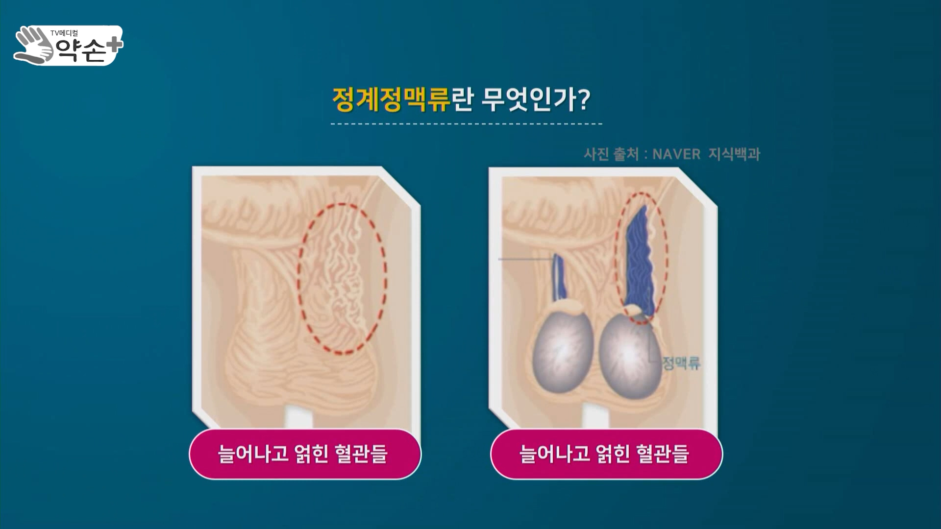 이 이야기를 할 때 많이 언급되는 게 '정계정맥류'입니다. 정계정맥류 같은 경우에는 정상 남성의 한 20%에서 발견될 만큼 흔한데요. 불임을 겪는 분들을 검사해 보면 대략 35%에서 40%에 발견될 만큼 정계정맥류가 있다고 해서 모두 불임이 되는 건 아니지만, 불임인 사람들을 조사해 보면 이 상태가 많은 그런 질환입니다.