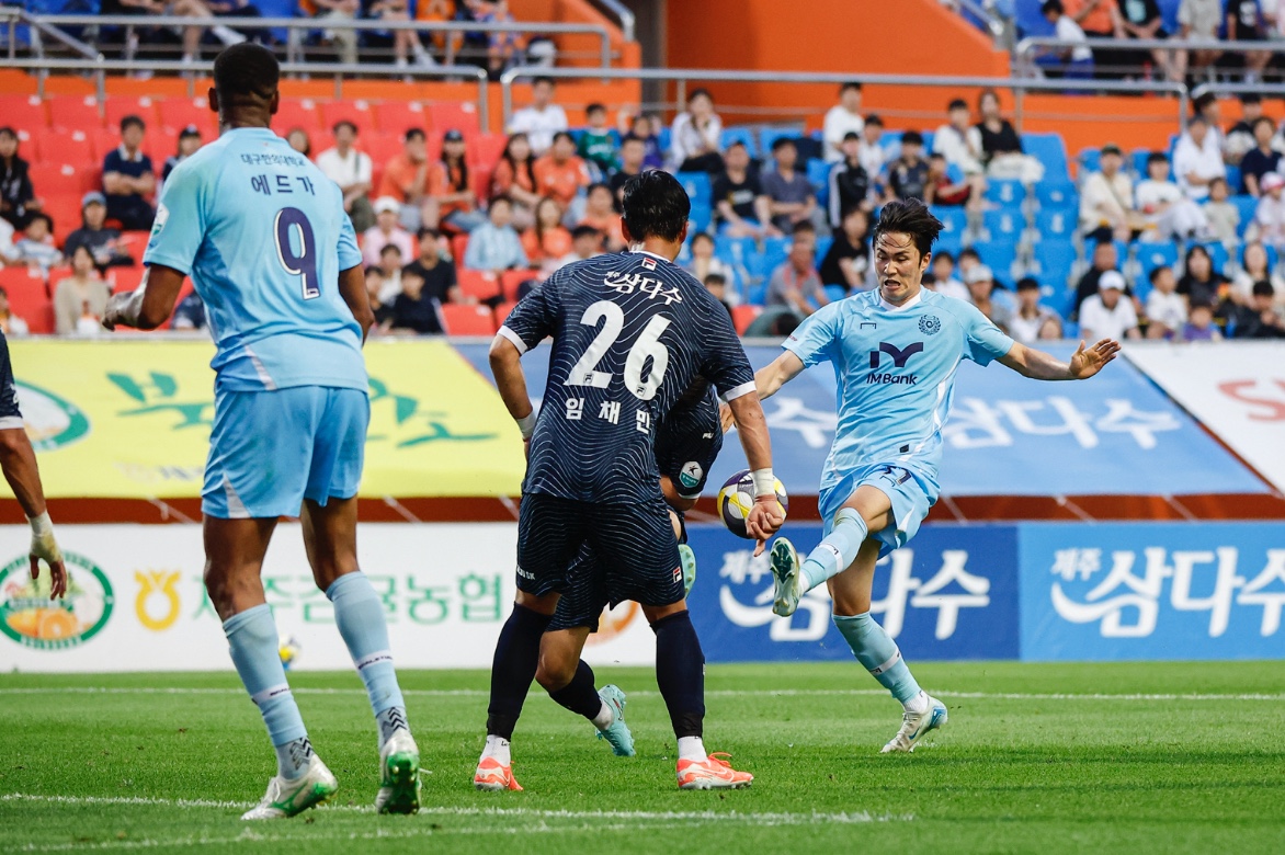 유기적인 모습을 보였던 대구는 전반 40분 시즌 첫 도움을 기록한 한종무의 패스를 김주공이 득점으로 연결하며 1-0 리드로 전반을 마무리합니다.
