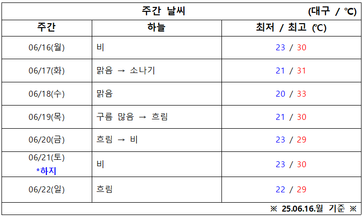 6월 3주 차 대구·경북 ‘날씨 체크’ 시작합니다.