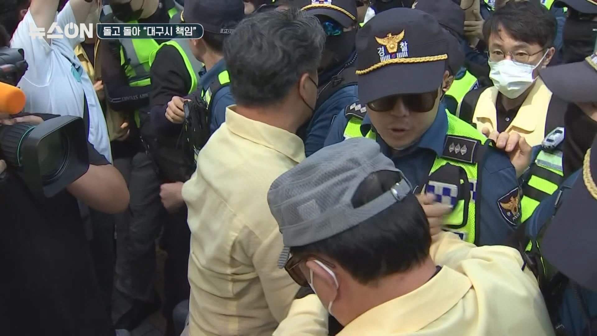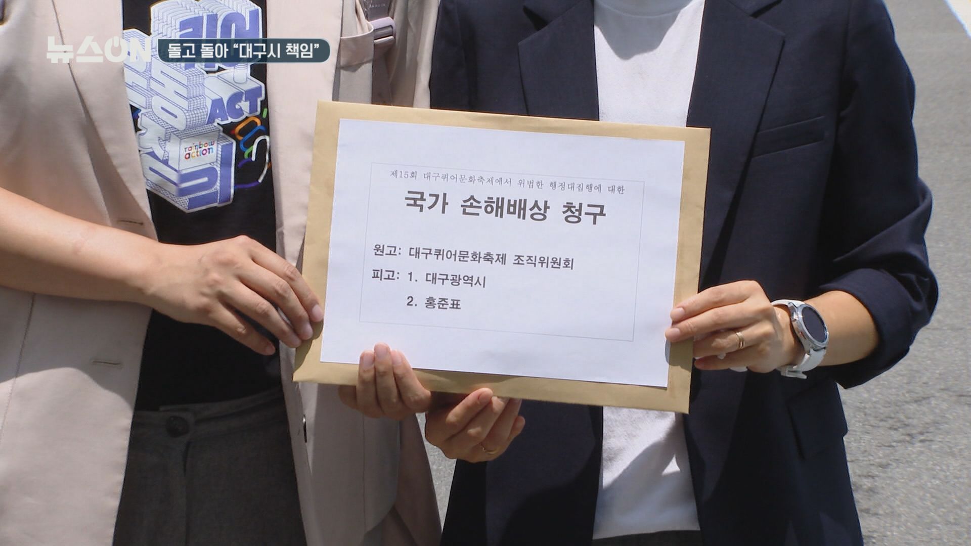 퀴어문화축제는 동성로 대중교통전용지구에서 열려왔습니다. 그런데 2023년, 홍준표 전 시장은 행사 무대 차량이 도로 점용허가를 받지 않아서 불법이라며 차량 진입을 공무원들을 동원해 저지했고요. 조직위는 물론 당시 대구경찰청도 집회 신고를 했고, 금지 가처분 신청도 법원이 받아들이지 않았다며 적법한 집회라며 맞서다가 사상 초유의 공무원과 경찰, 기관 간 물리적 충돌이 빚어지기도 했습니다. 이후 퀴어문화축제 조직위는 대구시와 홍준표 전 시장을 상대로 손해배상청구소송을 냈습니다.