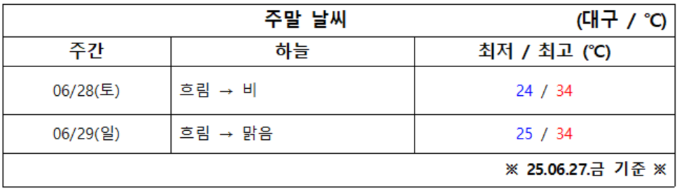 6월 4주 차 대구·경북 주말 ‘날씨 체크’