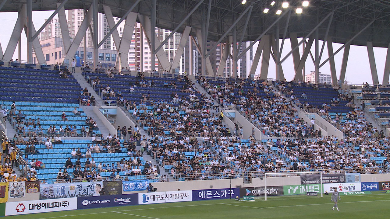 리그에서 평균 관중 만 명을 넘은 팀은 대전하나시티즌까지 5개 구단이고, 이 팀 가운데 시민구단은 대구FC뿐입니다.