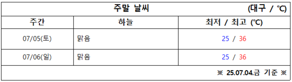 7월 1주 차 대구·경북 주말 ‘날씨 체크’