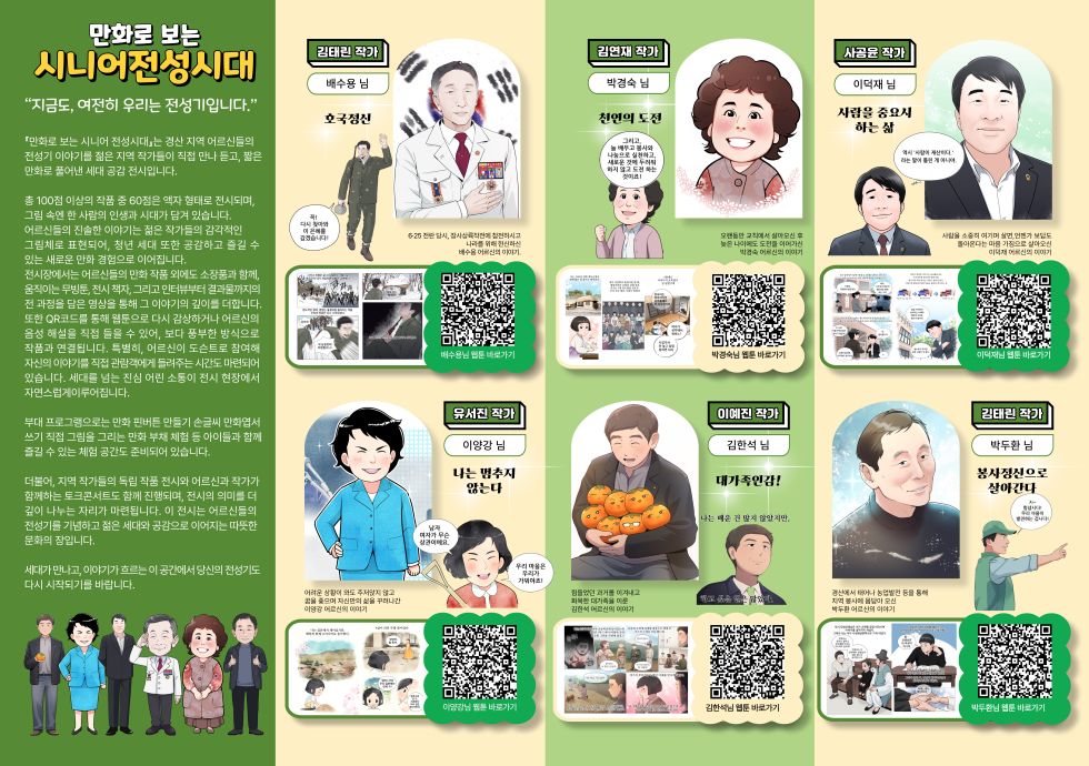 경산시에 따르면 한국 만화인 협동조합과 사단법인 대한노인회 경산시지부, 경산시가 협력해 마련한 이번 전시회에는 6명의 시니어와 5명의 지역 작가가 소통하면서 만든 만화 작품 60점을 선보입니다.