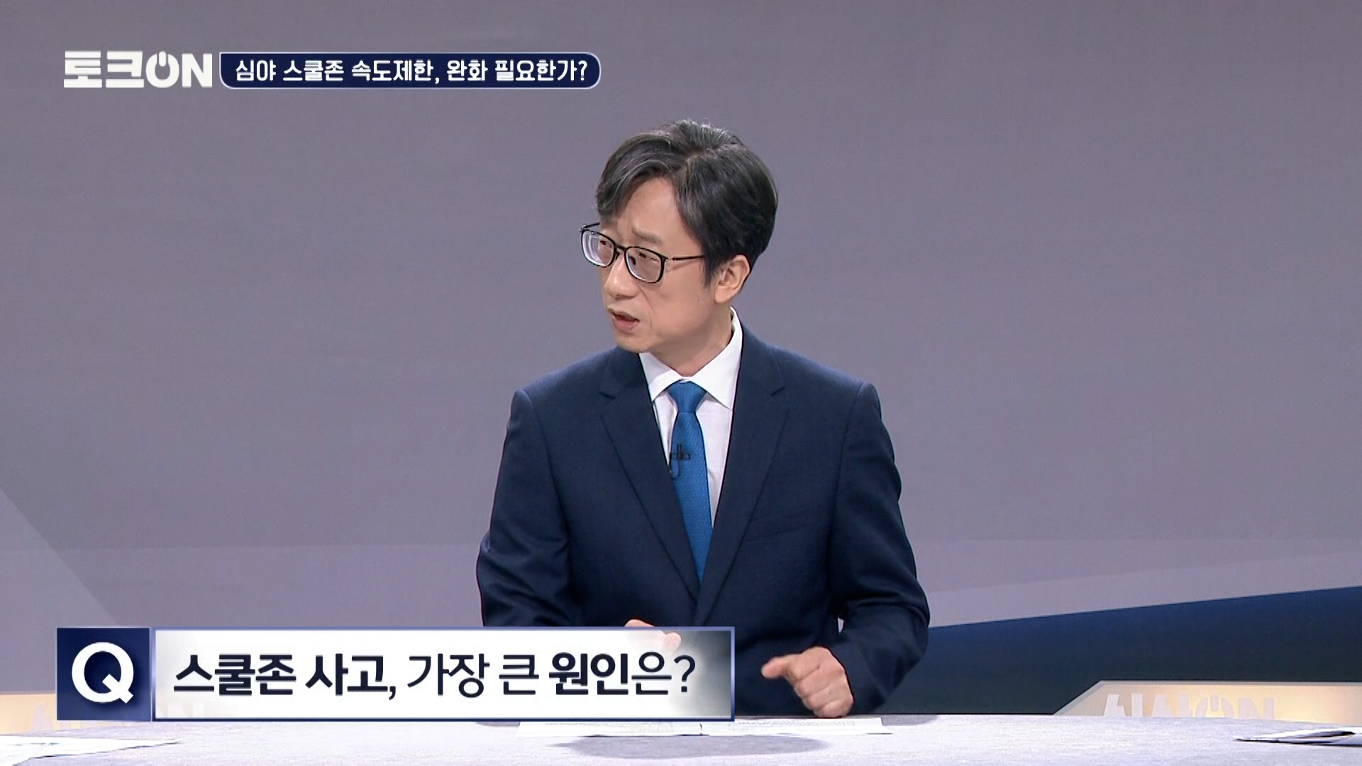 최근 어린이 통행량이 없는 심야 시간대에 스쿨존 제한 속도를 완화하자는 목소리가 높아지고 있습니다. 24시간 시속 30km인 속도 제한을 늦은 밤에는 시속 50km로 풀자는 것인데요. 반대 측은 속도 완화보다는 보행자의 안전을 지킬 구조적 개선을 더 논의해야 한다는 의견을 보이고 있습니다. 또, 스쿨존 사고의 주요 원인은 과속보다는 불법 주정차이기 때문에 엄격한 단속이나 안전시설 확충이 중요하다는 의견도 나오고 있습니다. <토크ON>에서는 심야 스쿨존 속도 제한 완화와 관련한 국민 여론은 무엇이고, 어떤 결정이 필요한지 토론합니다.