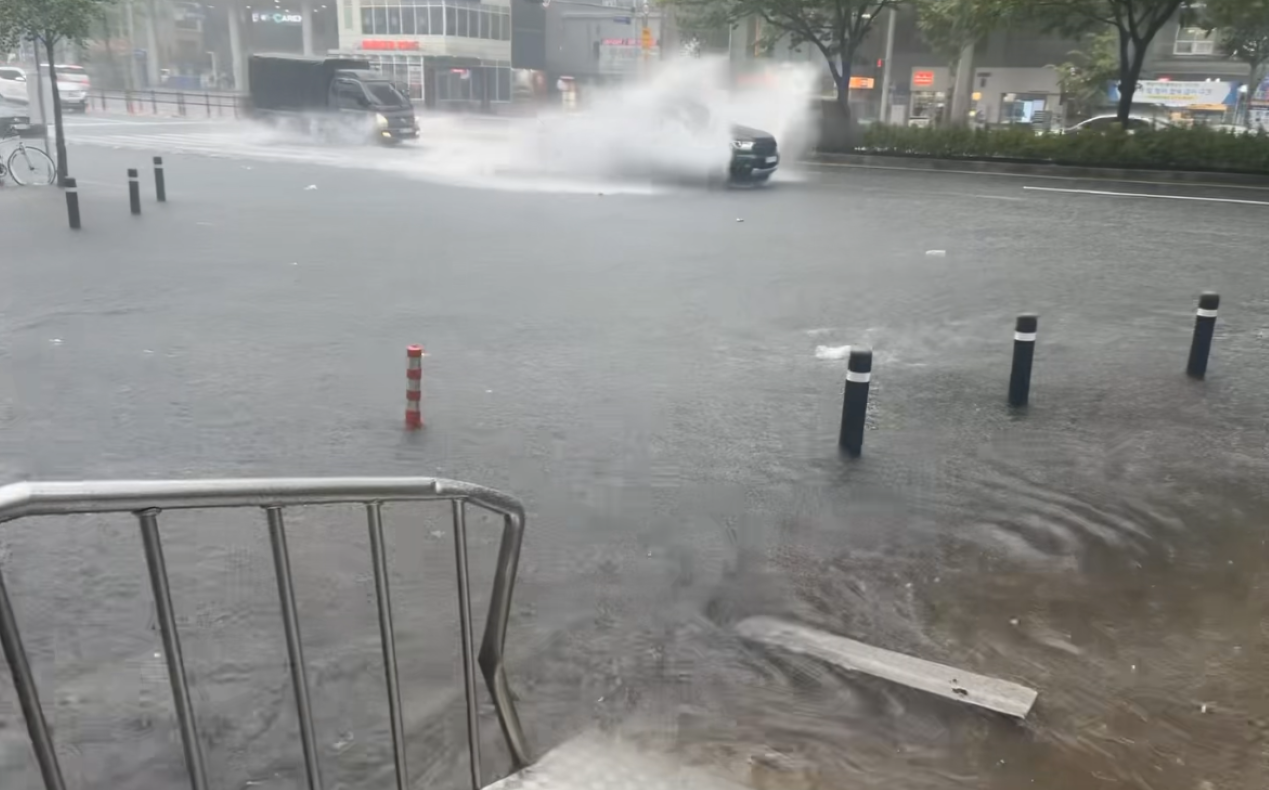 대구 달서구청 등에 따르면 죽전네거리 인근 침수로 인해 두 개 차선 일부와 보행로가 완전히 잠기며 큰 혼란을 빚었습니다.
