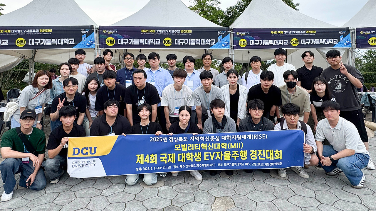 대구가톨릭대는 지난 7월 9일부터 12일까지 제주도에서 열린 '제4회 국제 대학생 EV 자율주행 경진대회'에 출전한 6개 팀 전원이 수상했다고 밝혔습니다.