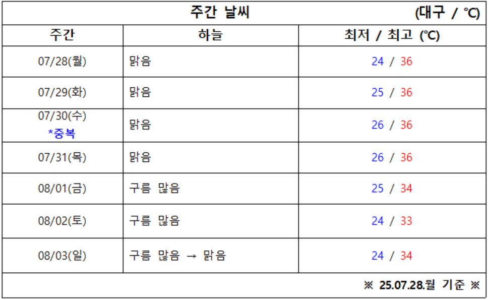 7월 5주 차 대구·경북 ‘날씨 체크’ 시작합니다.