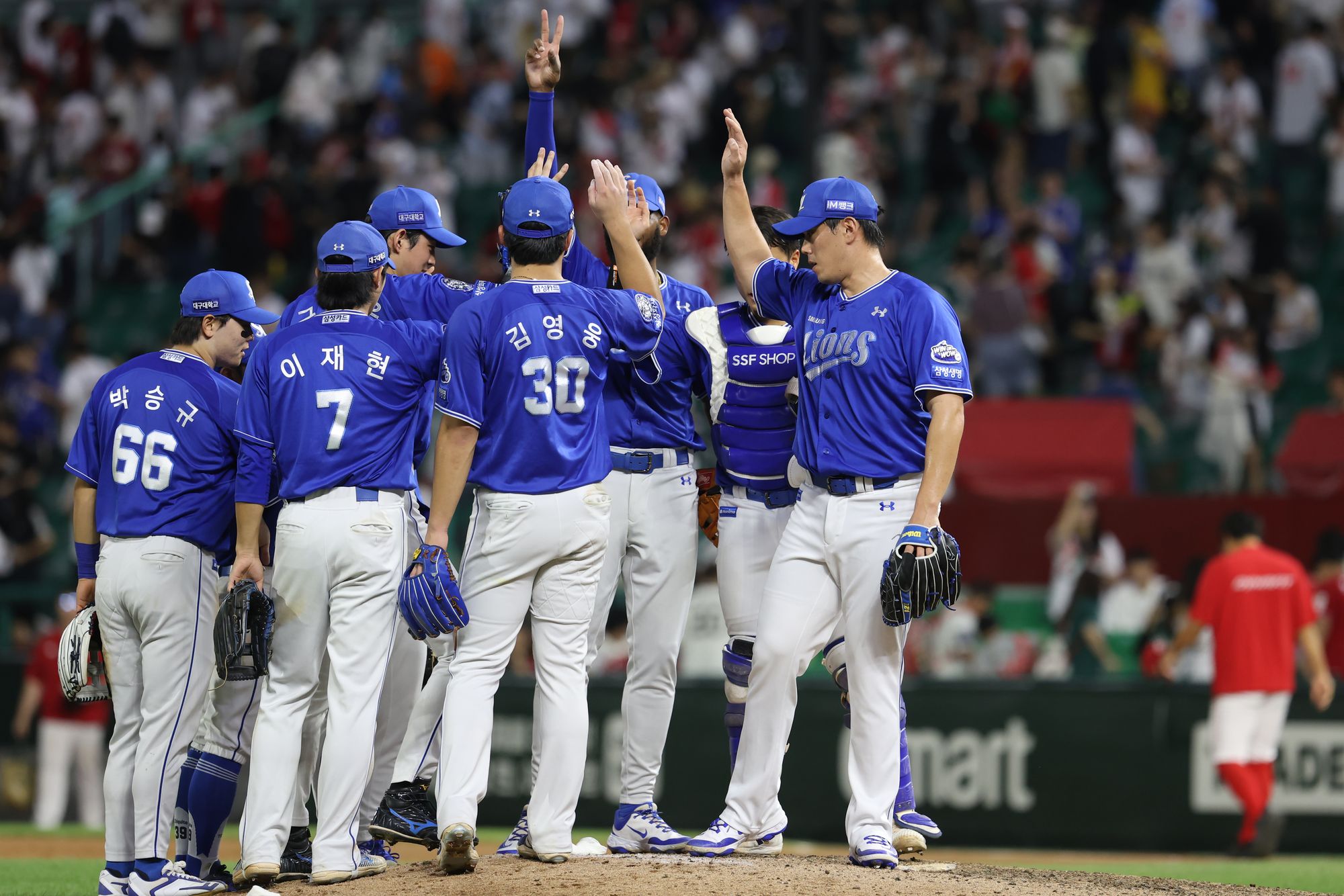 이어 등판한 이승현도 안타를 허용했지만, 무실점 투구를 펼친 삼성은 9회 2아웃 상황에서 등판한 김재윤이 대타 오태곤을 삼진으로 깔끔히 처리하며 팀의 연패 탈출에 마침표를 찍었습니다.
