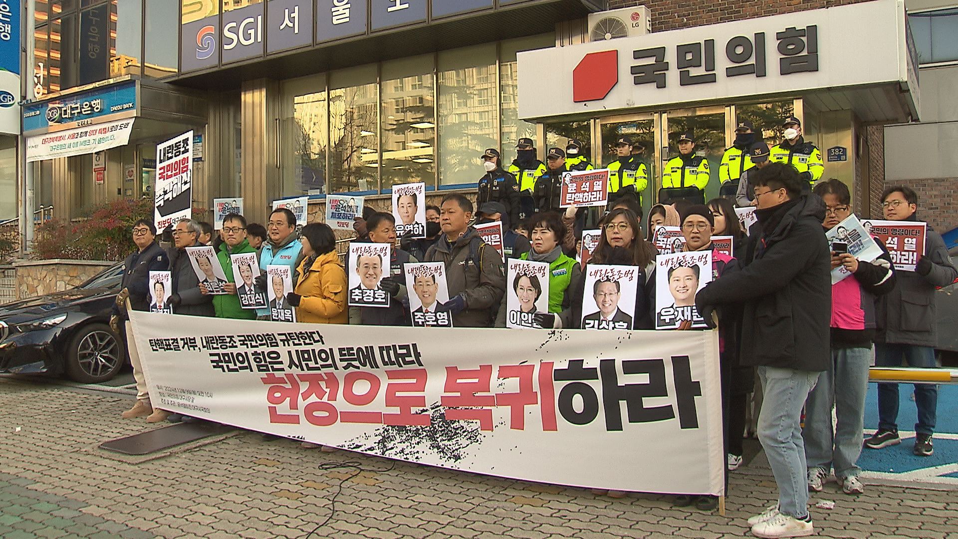 윤석열 대통령 탄핵소추안 표결에 불참한 국민의힘을 향해 규탄의 목소리가 커지고 있습니다. 특히 대구와 경북에 지역구를 둔 국민의힘 의원 25명은 전원 표결에 불참해 당사 등에 시민들의 항의가 이어지고 있습니다. 12월 9일 대구 시민사회단체와 노동단체가 모인 윤석열 퇴진 대구시국회의는 국민의힘 대구시당사 앞에...
