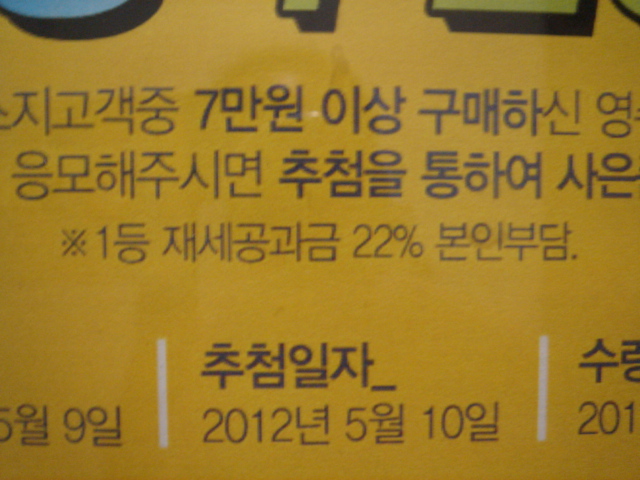그리고 ‘1등 재세공과금 22% 본인부담’이라고 써 있더군요.