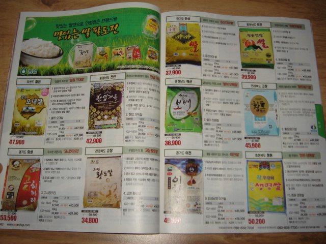 카탈로그에서 본 각 지역의 쌀과 그 가격입니다.