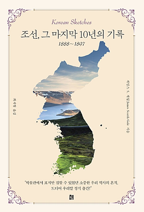 캐나다 토론토 대학 출신의 선교사 제임스 게일(1863-1937)은 1888년 25세 나이로 조선에 입국한다. 그는 만 9년 동안 조선 방방곡곡을 돌아다니며 보고 들은 것을 1898년 <조선 스케치 Korean Sketches>라는 제목으로 캐나다와 미국, 영국에서 출간한다. <조선, 그 마지막 10년의 기록>은 영어로 출간된 이 책을 다시 한국어로 옮긴 것이다.