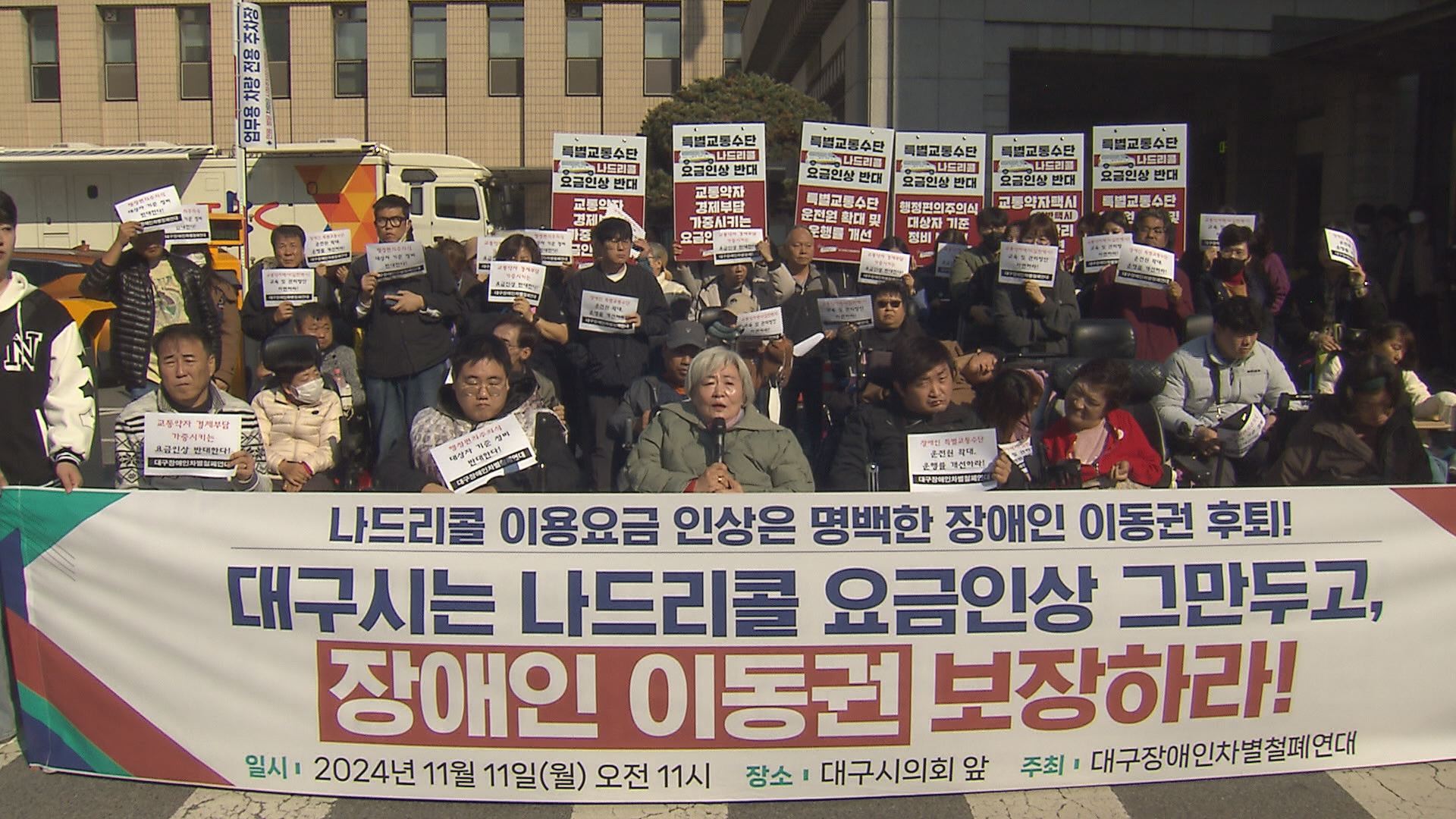 대중교통 타기 힘든 장애인과 노약자들이 이용하는 나드리콜의 요금을 지금보다 30% 넘게 올리고, 이용 자격도 더 까다롭게 하는 방안을 대구시가 추진 중인데~ 당장 장애인들이 비용 부담으로 이동권이 제한될 거라며 반발하고 나섰어요!허준석 대구시교통국장 "서비스 대상 범위가 넓다 보니까 배차 대기 시간이 너무 길...