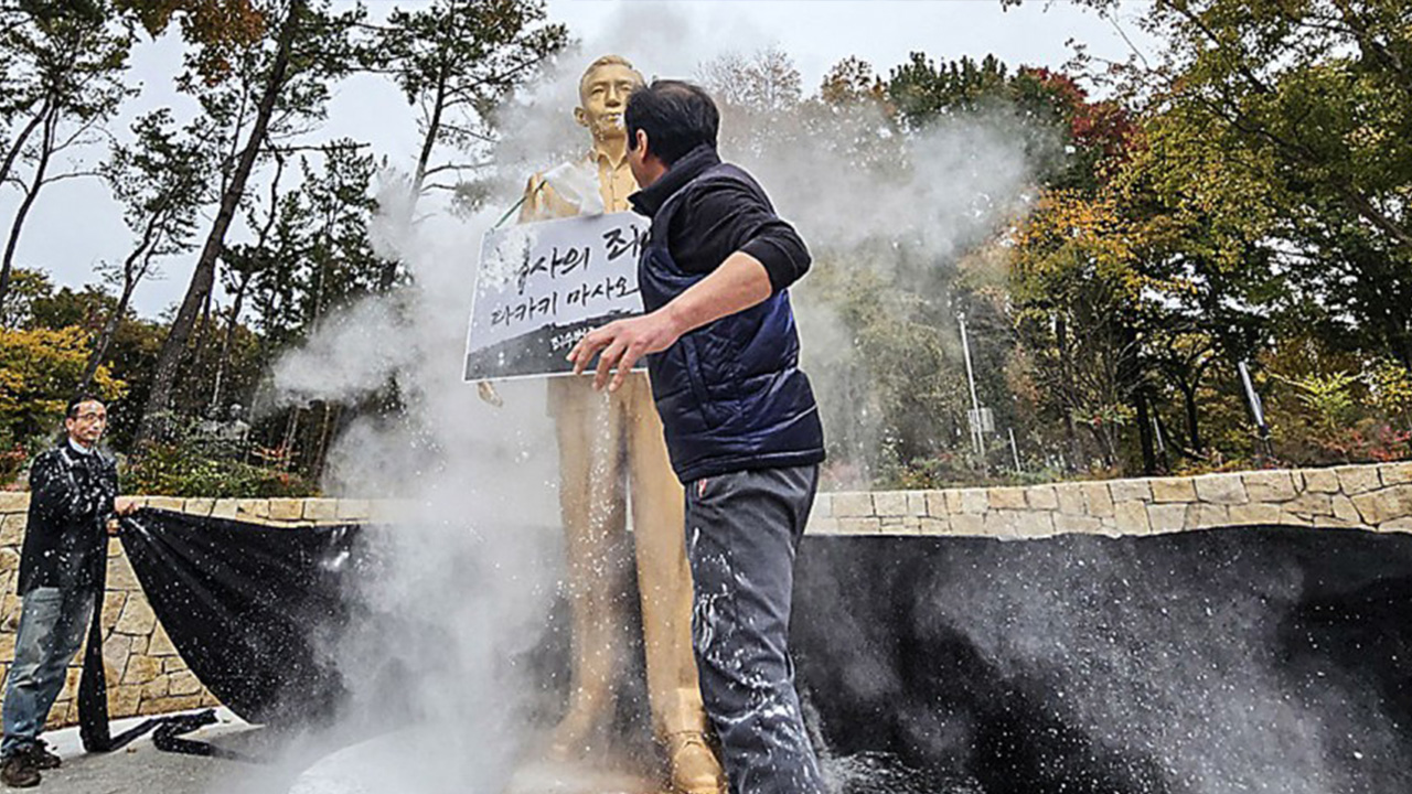 박정희 전 대통령 동상 밀가루 투척 등 3명 경찰 고발