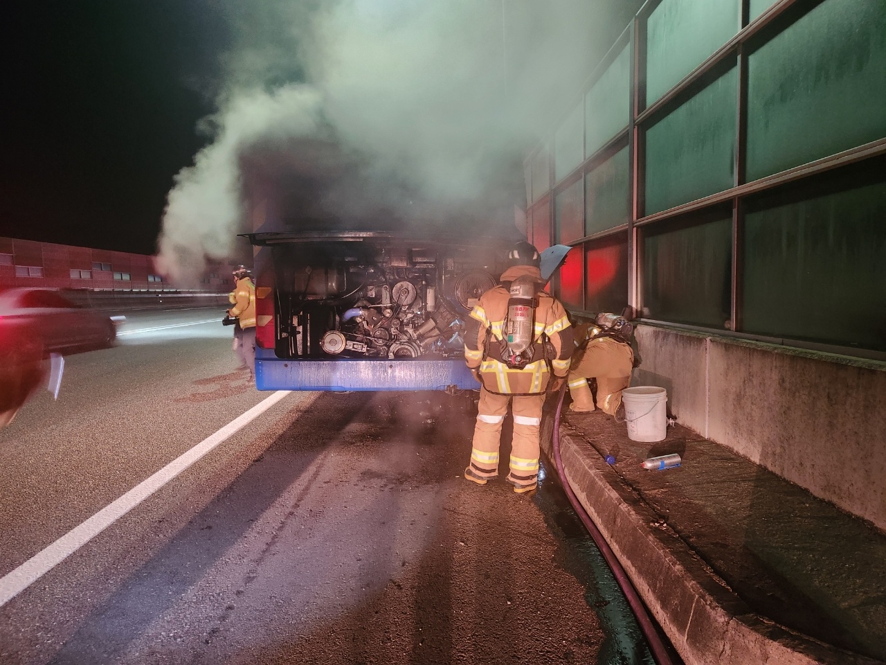 경부고속도로서 고속버스 화재…"엔진 과열 원인 추정"