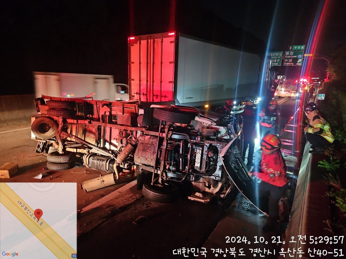 "넘어진 화물차 뒤를 '쾅'"···경북 경산 신대구부산고속도로서 화물차 2차 사고로 40대 운전자 다쳐