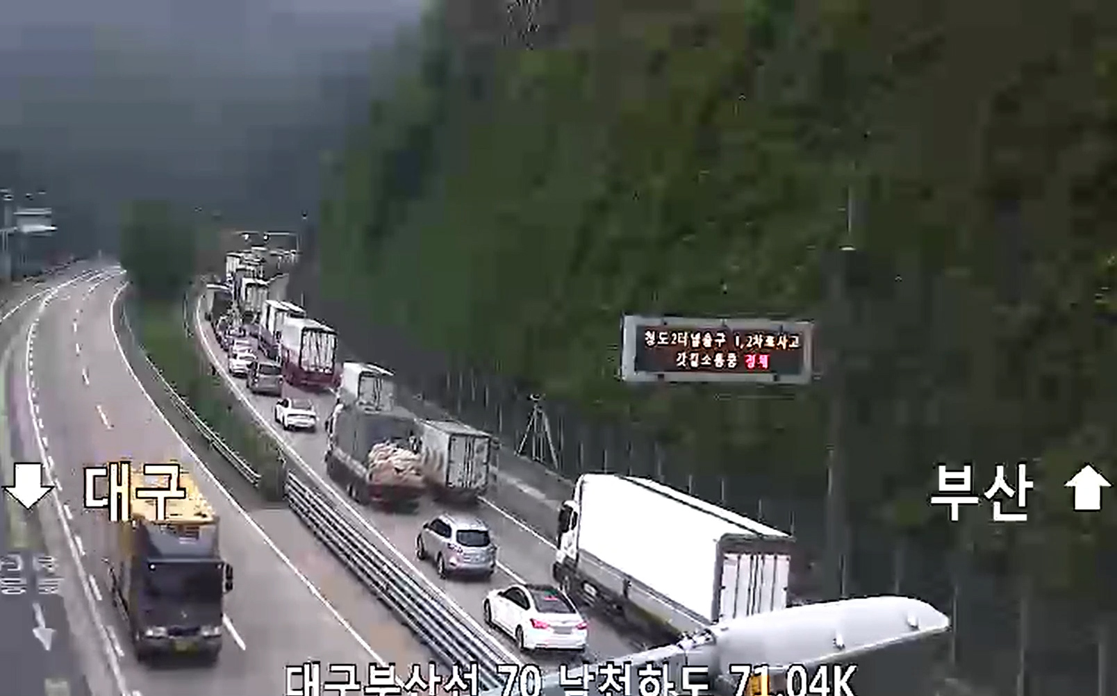 사진 제공 한국도로공사 로드플러스10월 17일 오전 6시 20분쯤 경북 청도군 청도읍 신대구부산고속도로 부산 방향 청도2터널 인근에서 차량 6대가 추돌했습니다.화물차 한 대가 차량 고장으로 2차로에 서 있던 화물차를 들이받았습니다. 뒤따르던 차량 석 대가 사고를 보고 멈춰 섰는데, 그 뒤를 달리던 화물차가 이를 추돌...