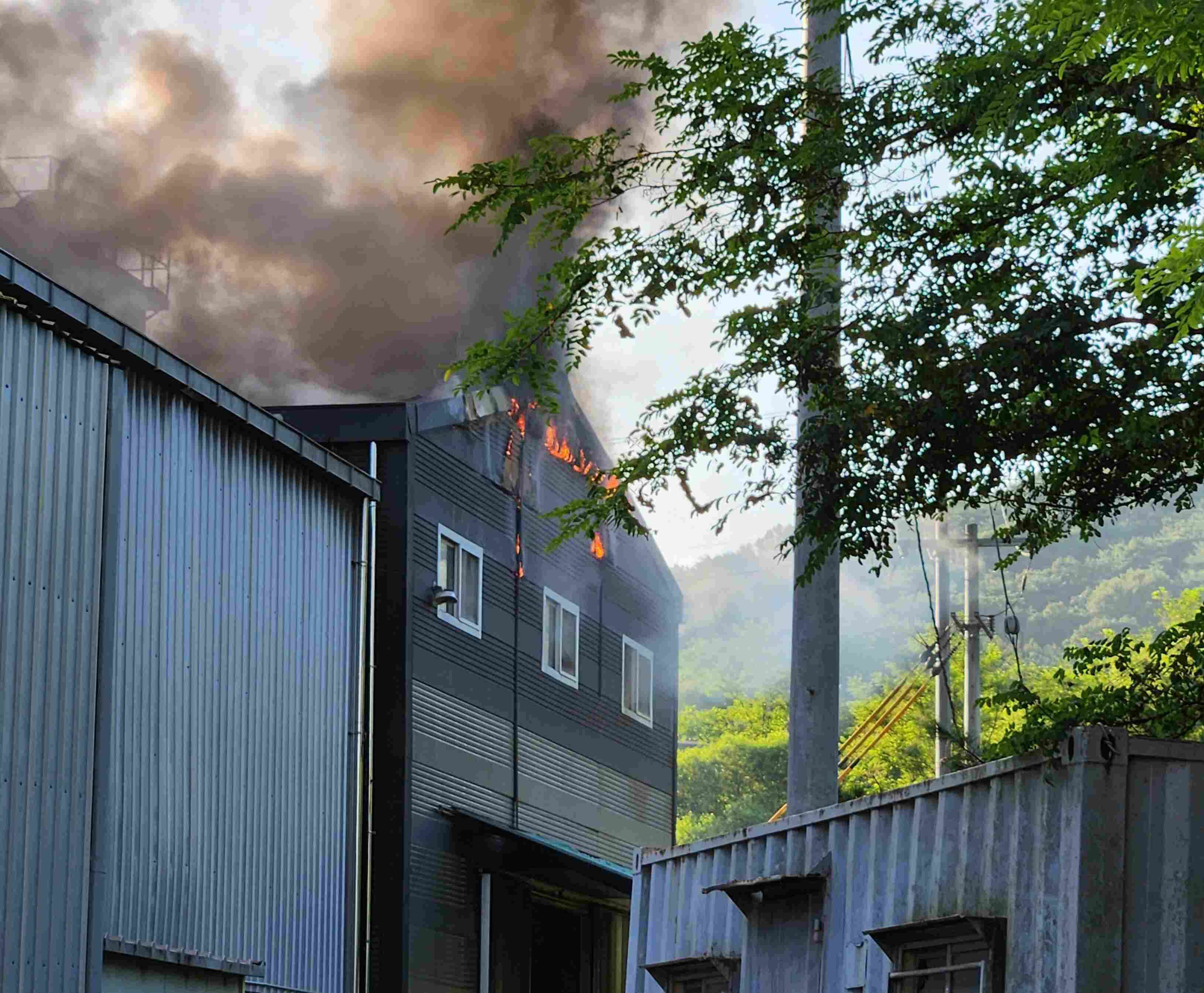 사진 제공 경북소방본부8월 17일 오전 6시 50분쯤 경북 성주군 월항면 임목 폐기물 재활용 공장에서 불이 났습니다.신고를 받고 출동한 소방 당국은 장비 21대, 인력 43명을 동원해 2시간 40여 분 만에 불을 모두 껐습니다. 이 불로 다친 사람은 없었지만, 공장 1동 150㎡가 타 소방서 추산 6천2백만 원의 재산 피해가 났습...