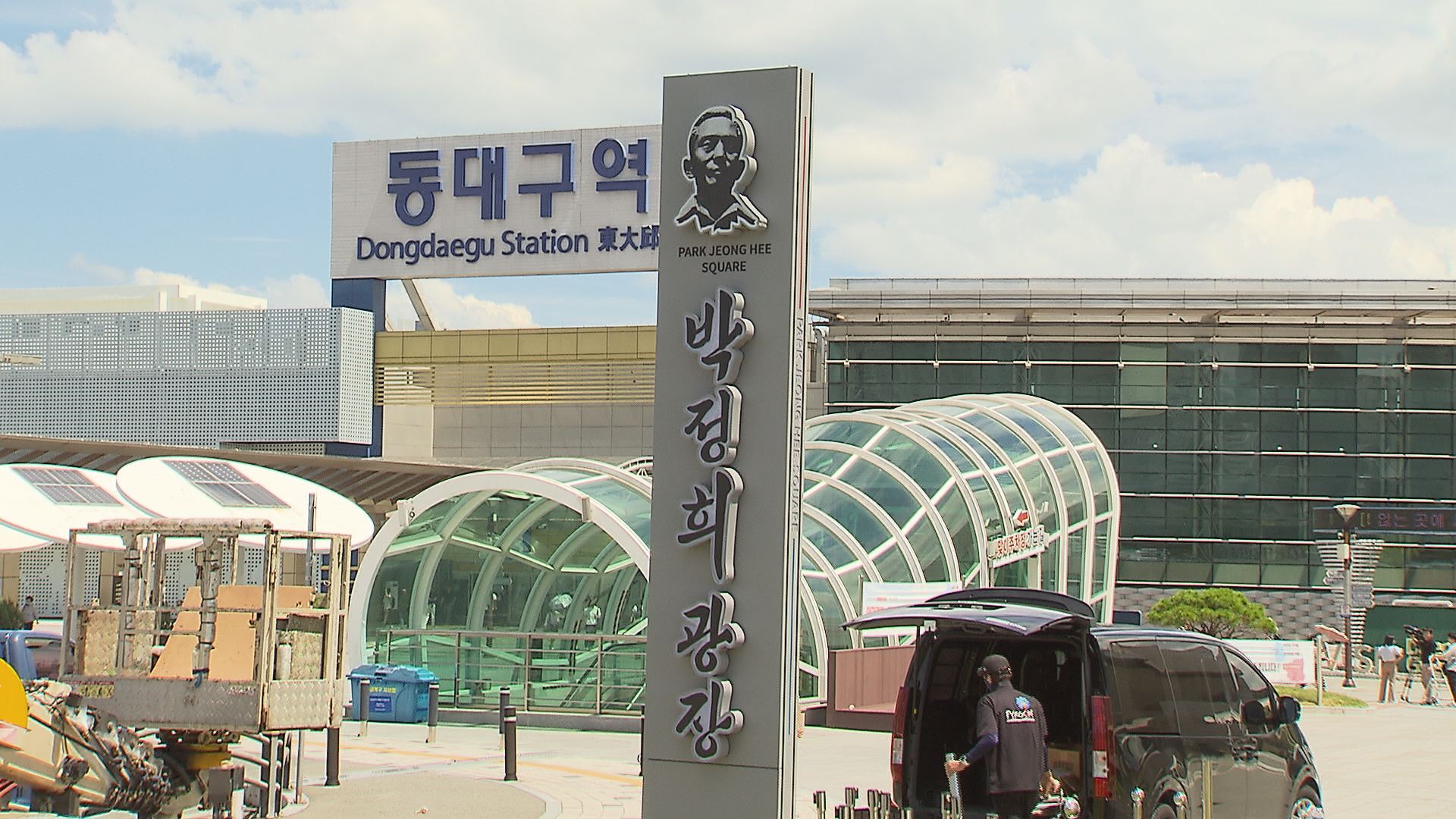 동대구역 앞 이제 '박정희 광장'동대구역을 오갈 때 지나게 되는 역사 앞 넓은 공간이 이름을 갖게 됐습니다. '박정희 광장'입니다. 커다란 이름표도 생겼습니다. 대구시는 역 앞에 5m 높이 기둥을 세우고 박정희 전 대통령의 친필 서체로 표지판을 만들었습니다. 박 전 대통령의 얼굴도 그려 넣었습니다. 이곳에 박 전 대...