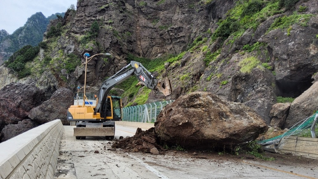 울릉도 일주도로에 130톤 바위 굴러떨어져···한때 통행 중단