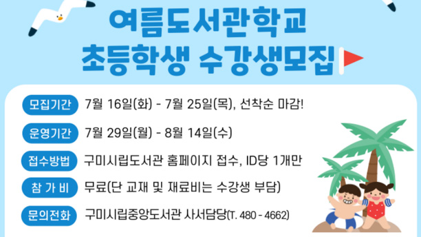 경북 구미시립도서관, 여름 도서관학교 참여 학생 모집