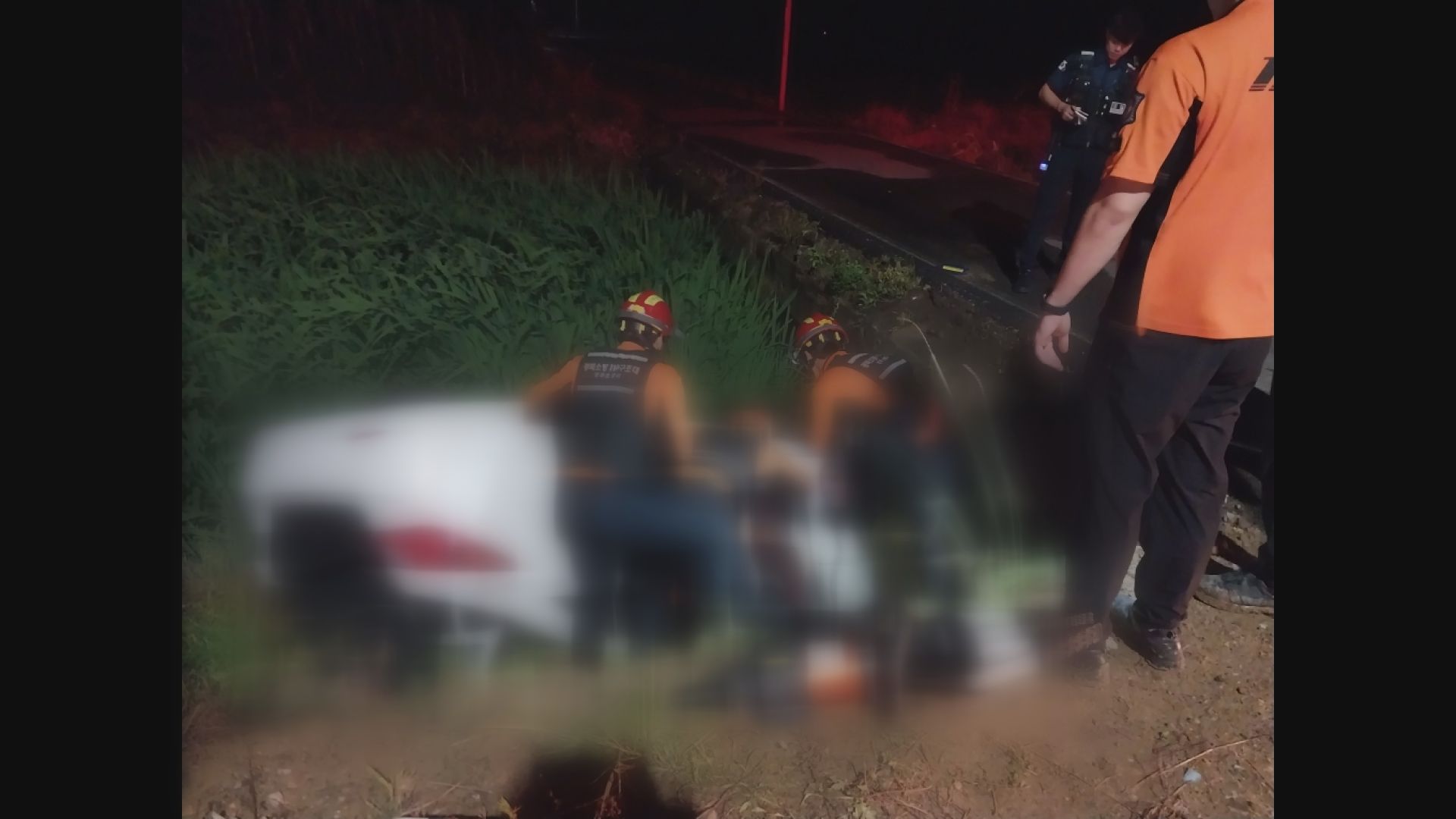 경주서 빗길에 승용차 전복..20대 운전자 심정지