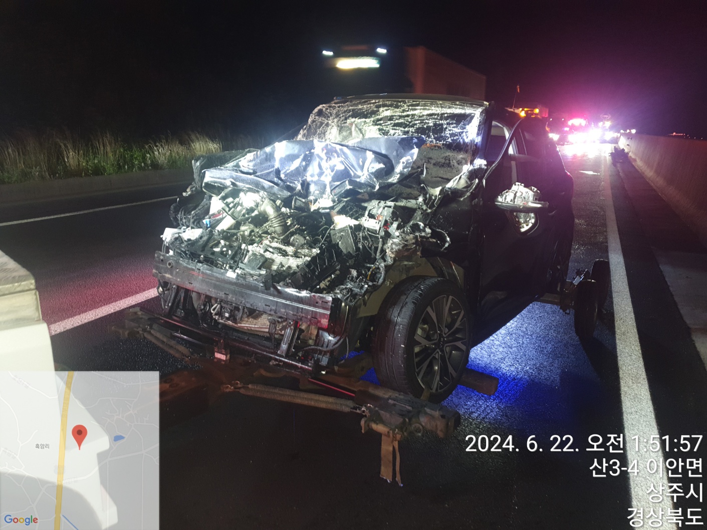 사진 제공 송영훈6월 22일 오전 1시 30분쯤 경북 상주시 중부내륙고속도로 양평 방향 점촌함창나들목 근처에서 화물차 3대와 승용차 1대가 추돌했습니다.이 사고로 승용차 운전자가 다쳐 병원으로 옮겨졌는데, 생명에는 지장이 없는 것으로 알려졌습니다.사고 당시 화물차 2대가 먼저 추돌하고 뒤따라가던 화물차와 승용차...