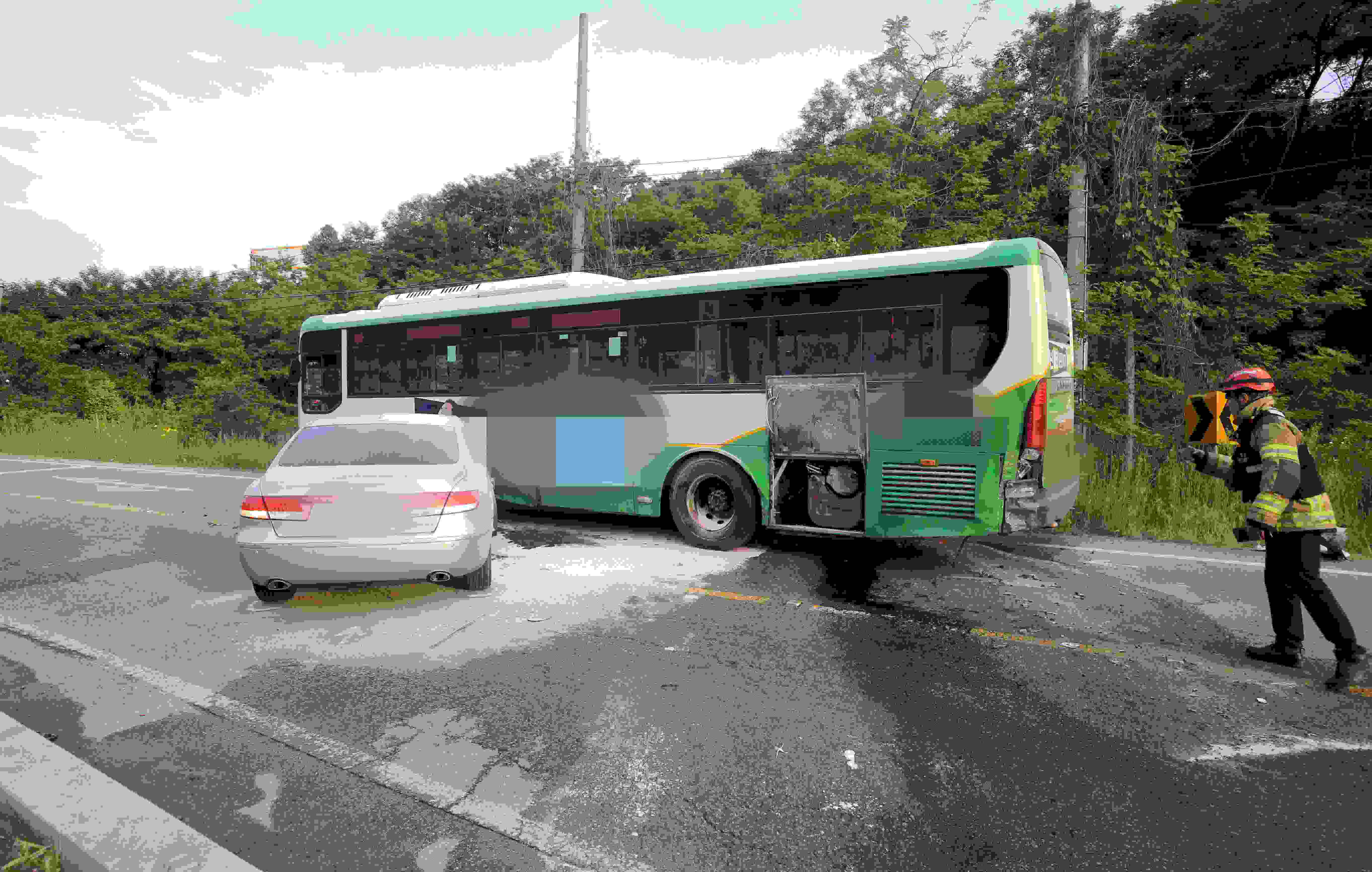 경북 구미서 시내버스 불···"뒤따르던 승용차가 버스 추돌"