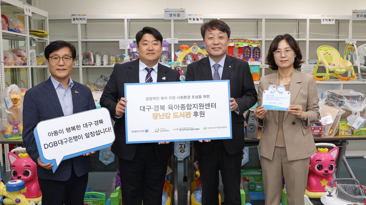 DGB대구은행은 굿네이버스 대구경북지역본부와 함께 장난감 도서관 지원을 위한 후원금을 전달했습니다.이 후원금은 장난감 종류와 개수, 장기간 대여 등의 불편을 겪고 있는 대구 장난감 도서관 8곳의 장난감 구입에 사용됩니다.장난감 도서관은 아이들의 성장 발달 단계에 맞는 연령대별 맞춤 장난감을 무료로 대여해 주...