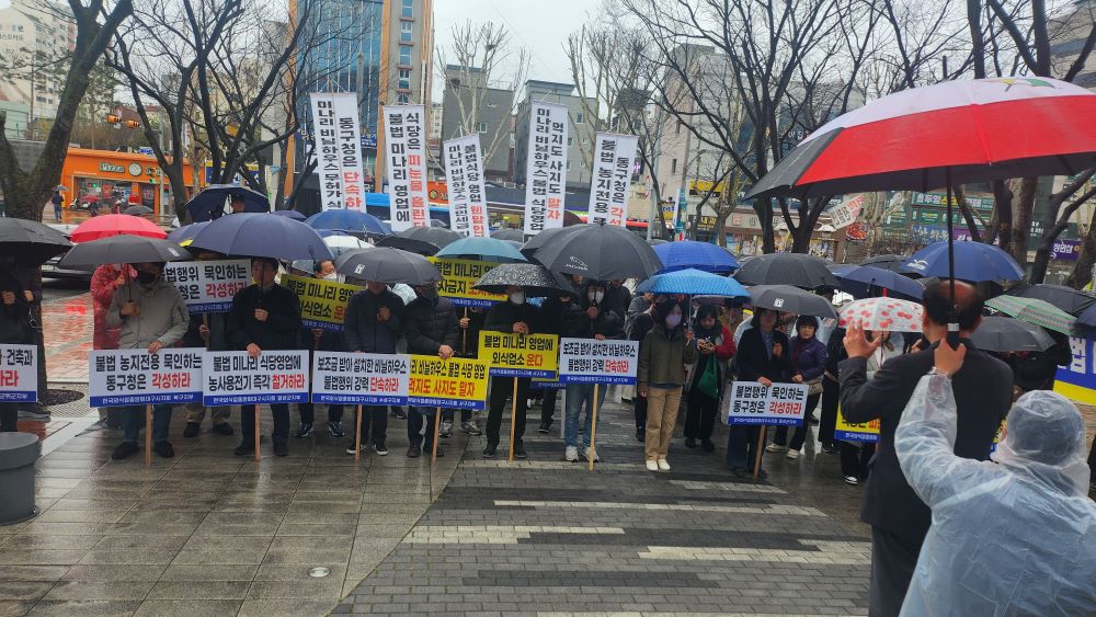 한국외식업중앙회 소속 대구 상인 100여 명이 3월 25일 동구청 앞에서 집회를 열고 미나리 농가의 불법 식당 영업을 규탄하며 강력한 단속을 촉구했습니다. 이들은 "농막에서 미나리와 삼겹살, 소주 등 불법 판매가 공공연하게 성행하면서 외식 업소의 피해는 확대되고 있다"라며 "농지법 위반과 탈세, 위생법 위반 등 갖은...