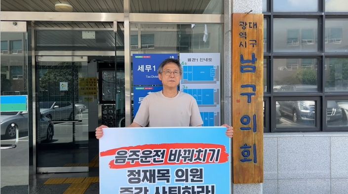 대구참여연대, '운전자 바꿔치기' 대구 남구의회 정재목 의원 제명 촉구 1인 시위