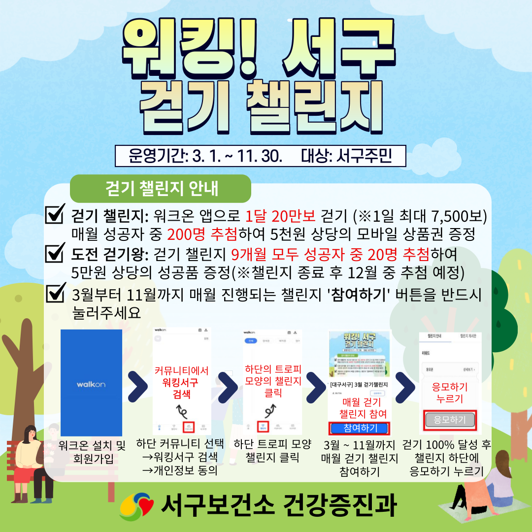대구 서구, '워킹! 서구, 걷기 챌린지' 운영