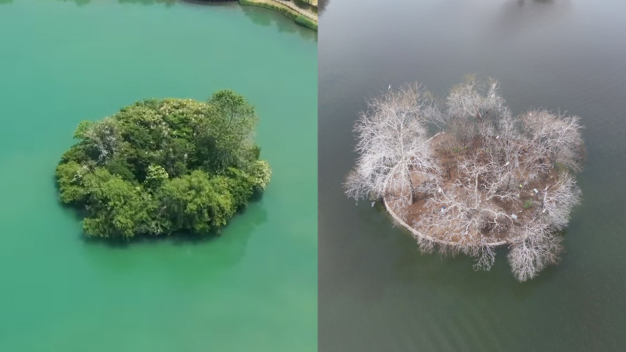 [심층] "눈이 내렸나?" 새똥으로 뒤덮인 대구 수성못 둥지섬···은색 연·독수리 모형까지 등장
