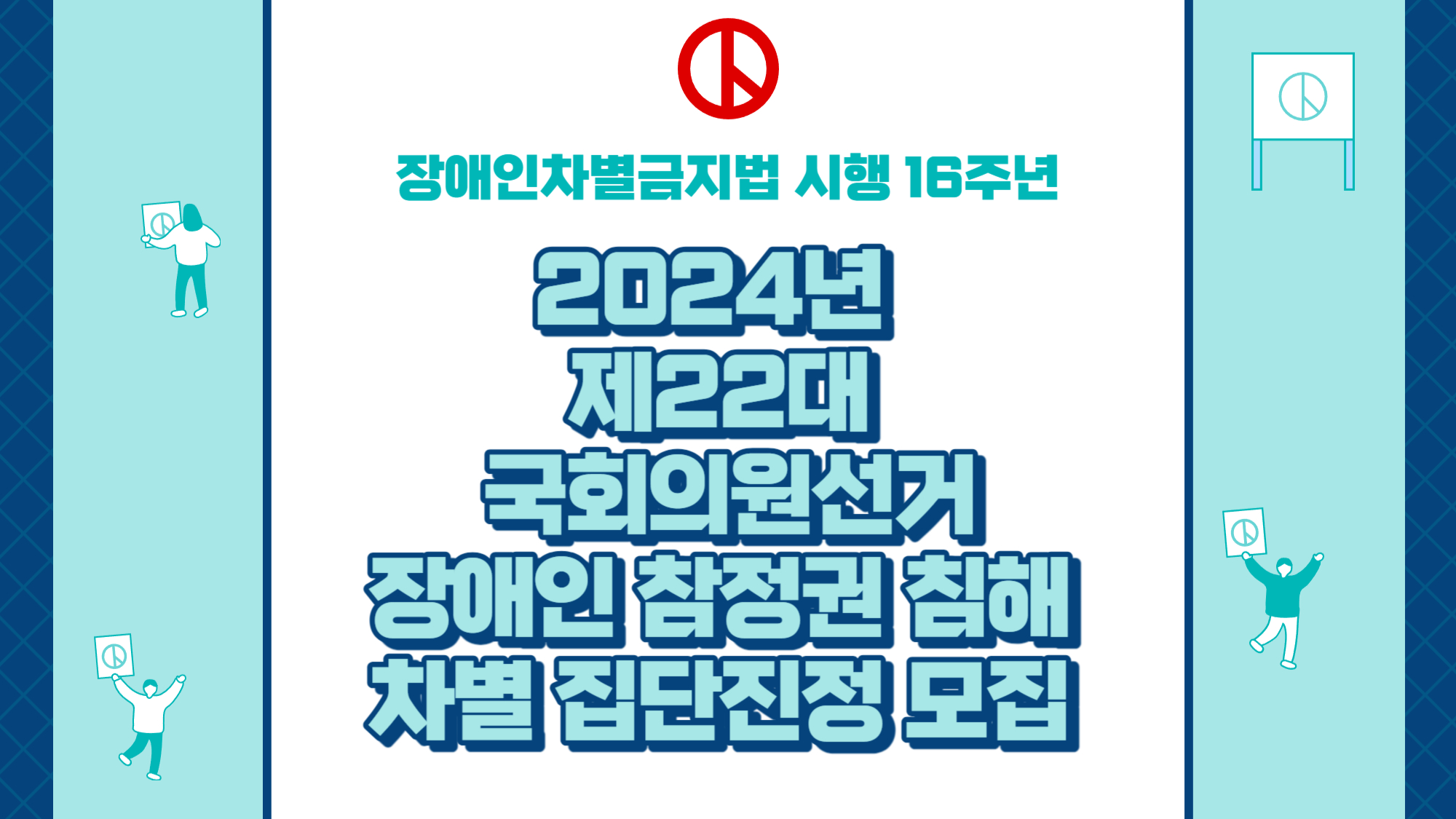 대구 15771330 장애인 차별 상담 전화네트워크(다사장애인자립생활센터, (사)대구사람장애인자립생활센터, (사)장애인지역공동체 부설 다릿돌장애인자립생활센터, 한국농아인협회 대구광역시협회)는 2024년 4월 국회의원 선거에서 장애인의 참정권을 둘러싼 차별과 배제 사례를 조사해 인권위에 집단 진정을 제기할 예정입...