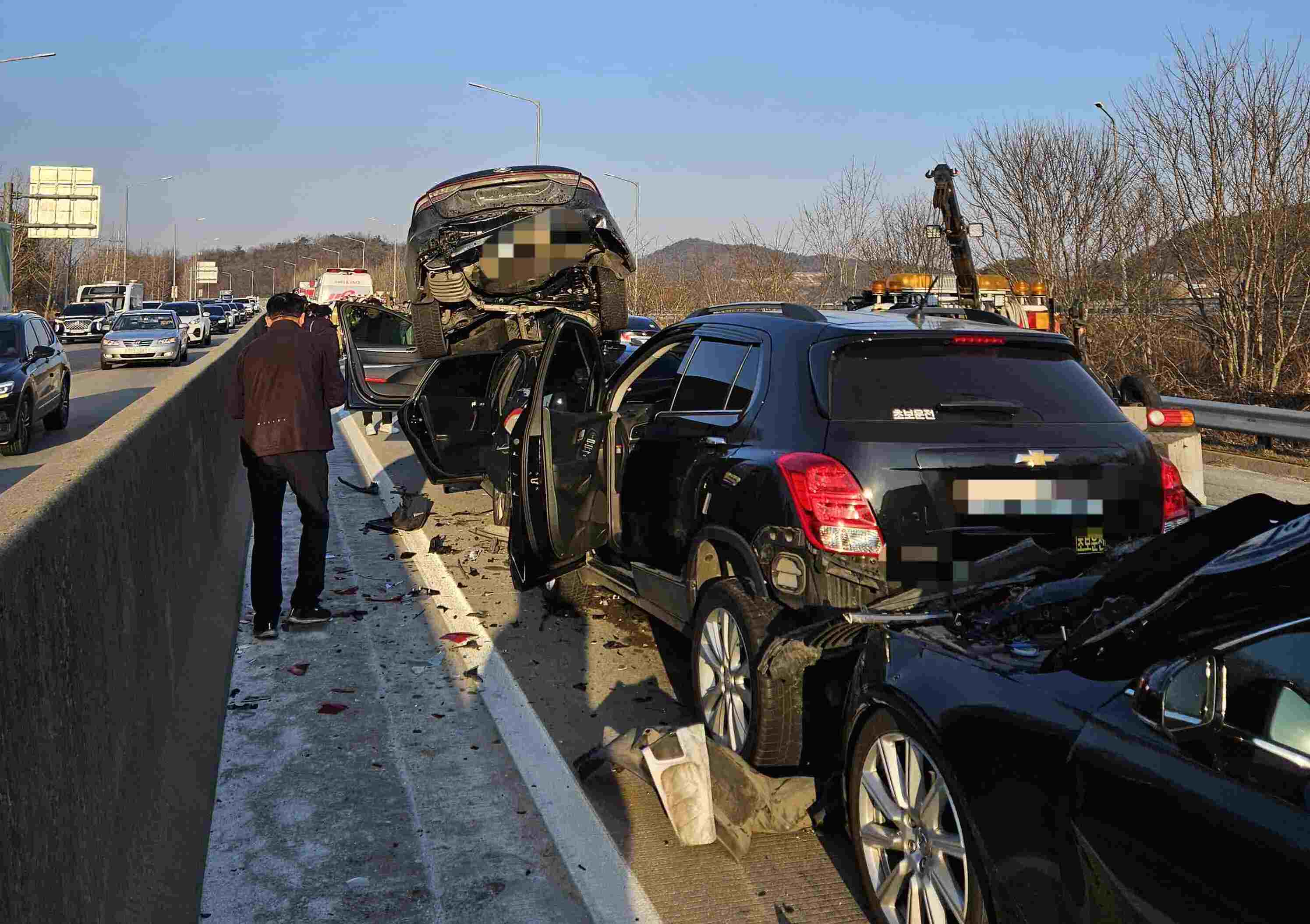 1월 28일 오후 4시 20분쯤 경북 문경시 중부내륙고속도로 양평방향 점촌함창 나들목 인근에서 승용차와 SUV 차량 등 차량 8대가 연쇄 추돌하는 사고가 났습니다.이 사고로 8명이 경상을 입어 병원으로 옮겨졌습니다.사고 직후 2개 차로 중 사고가 난 1차로가 차단되면서 1시간가량 도로 정체가 빚어지기도 했습니다.경찰은 ...