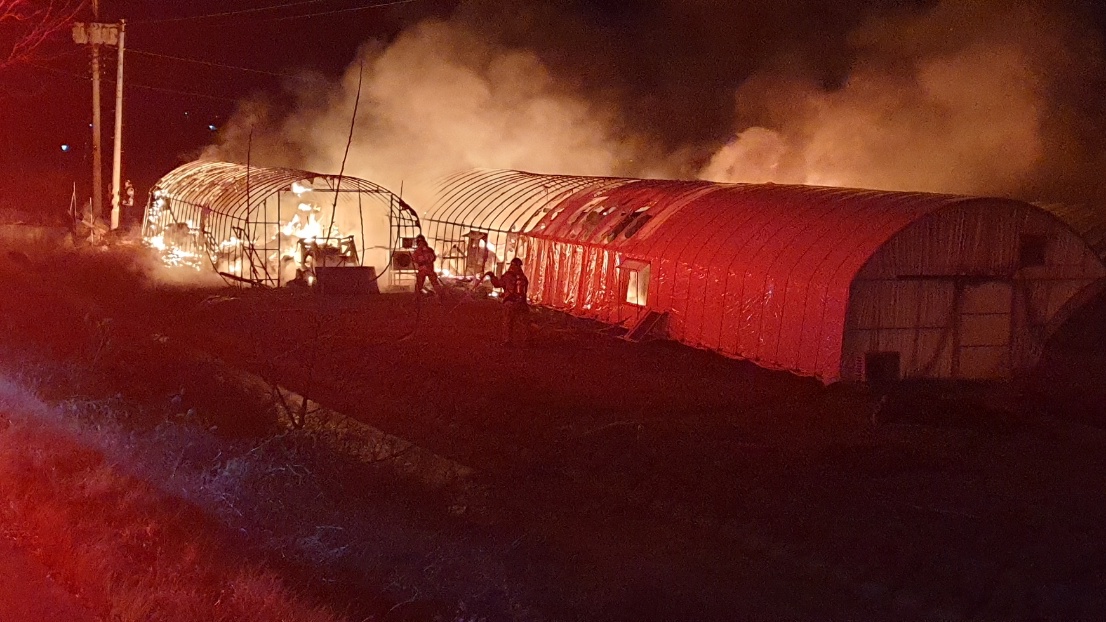 경북 상주 비닐하우스 화재···비닐하우스 3동 불에 타