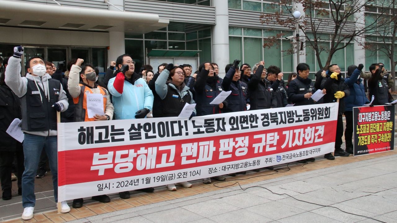 사진 제공 전국금속노동조합 대구지부노동계가 조양·한울 기공 해고 노동자들의 부당해고 및 부당노동행위 구제신청을 기각한 경북지방노동위원회를 규탄했습니다. 민주노총 전국금속노동조합 대구지부는 1월 19일 오전 대구지방고용노동청 앞에서 기자회견을 열고 "조양·한울 기공의 부당해고 증거가 있는데도 노조 분회장...