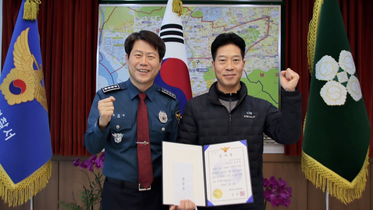 사진 제공 대구 성서경찰서거리에서 청소하던 환경공무관이 절도 용의자를 잡았습니다.대구 달서구청 환경공무관 장준영 씨는 2023년 12월 26일 오후 2시 50분쯤 달서구 성당동 행정복지센터 인근을 청소하던 중 60대 여성이 도둑을 잡아달라고 외치자 달아나던 60대 남성을 잡아 경찰에 넘겼습니다. 경찰은 이 남성은 여성...