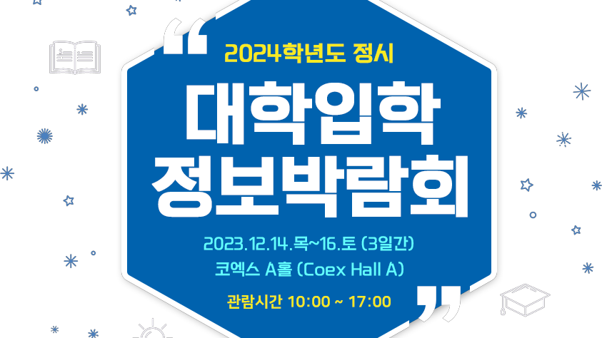 사진 제공 한국대학교육협의회한국대학교육협의회는 12월 14일부터 16일까지 3일간 서울 강남구 삼성동 코엑스에서 전국 128개 대학이 참가하는 2024학년도 정시 대학 입학 정보박람회를 개최합니다.이번 박람회에서는 참여 대학의 전형 결과 분석을 바탕으로 학생들에게 실질적이고 구체적인 상담이 이뤄질 예정입니다.‘참...