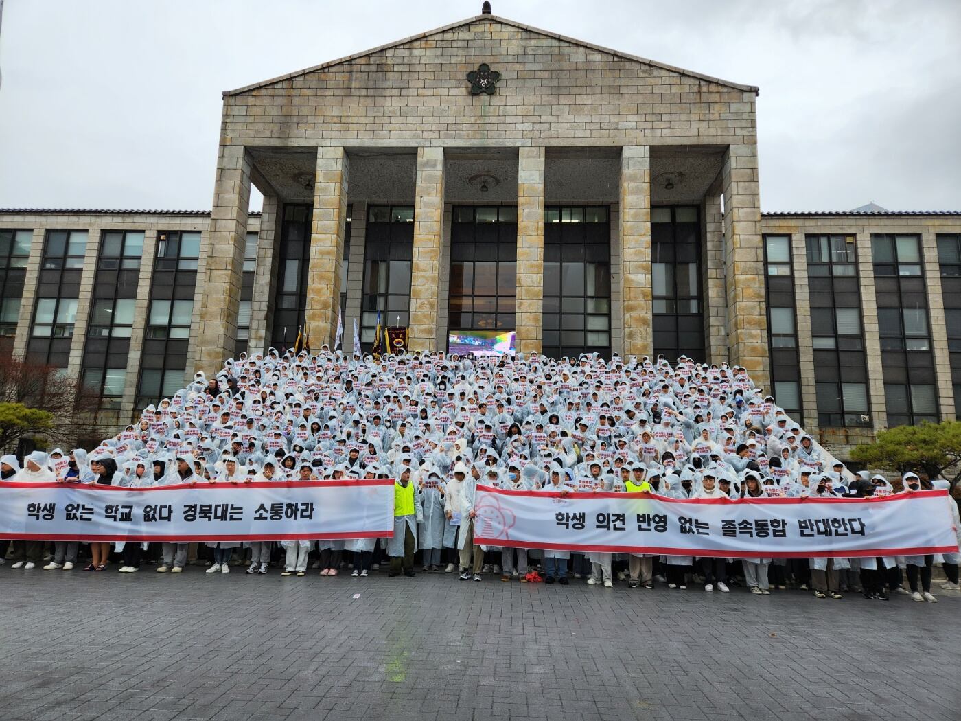 사진 제공 경북대 재학생경북대학교 총학생회는 조금 전 12시부터 경북대 본관 앞에서 통합 무산에 대한 확답을 요구하는 기자회견 및 학생 총궐기 대회를 열고 있습니다. 학생들은 일방적인 통합에 반대한다는 문구가 적힌 플랜카드와 현수막 등을 들고 대학 본부 측을 비판했습니다. 학생들은 두 대학 간 통합 논의 과정...
