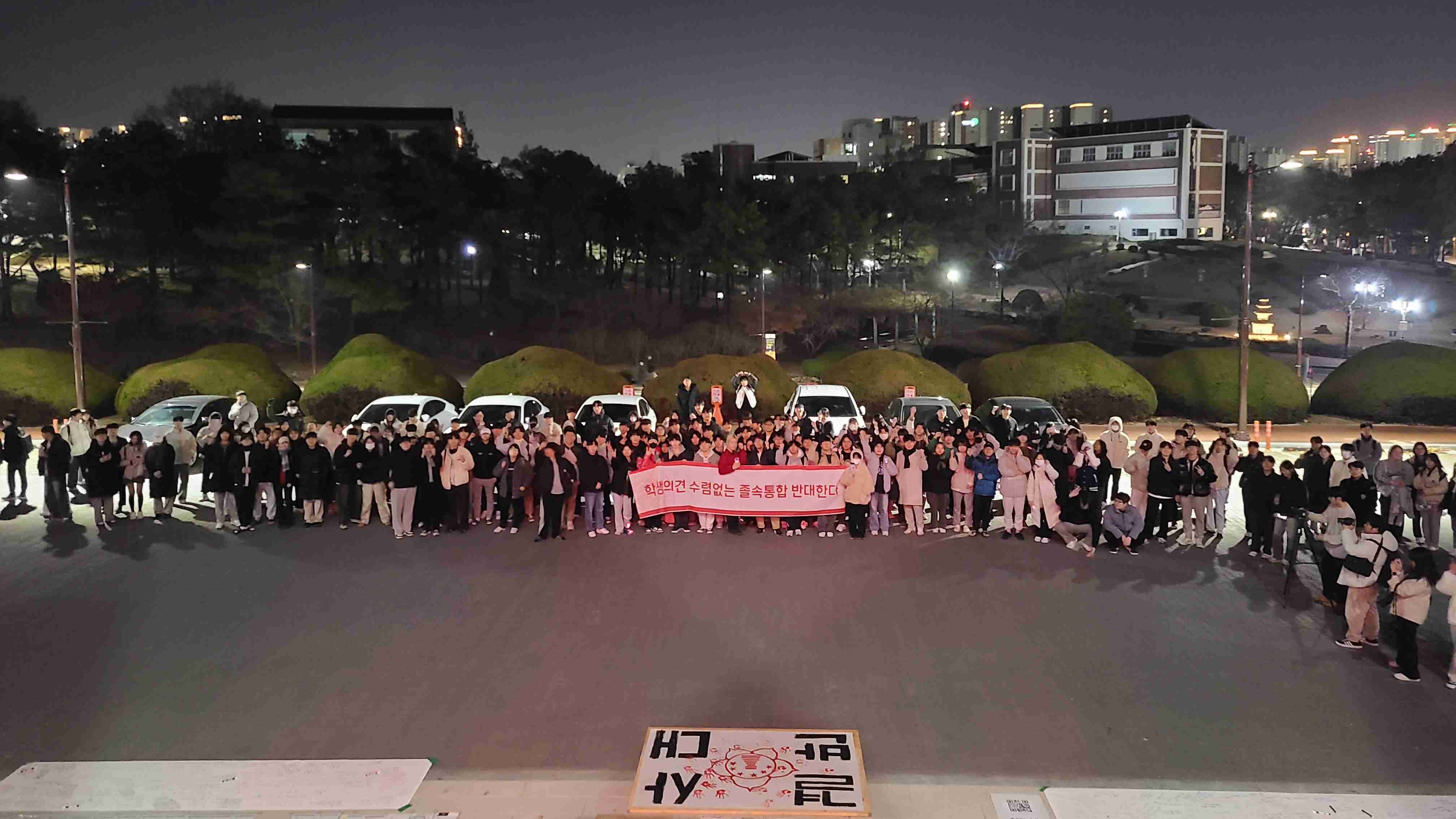'통합 반발' 경북대 총장과 총학생회 만나···바깥에선 학생들 항의 집회