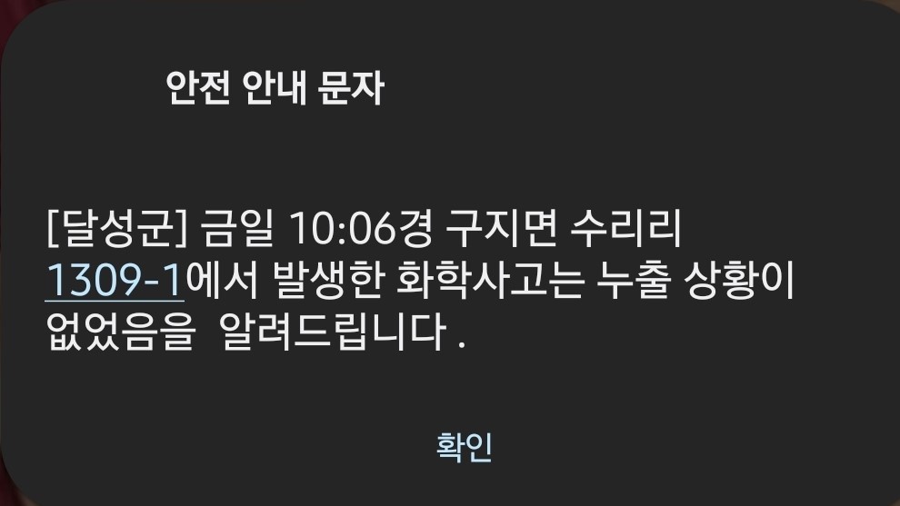 대구 달성군, '가스 누출' 오인 신고로 안전 재난 문자 잘못 발송 '혼란'