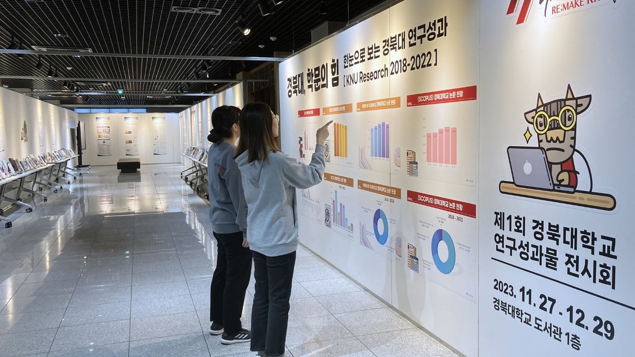 사진 제공 경북대학교경북대학교 도서관은 2023년 12월 29일까지 경북대 중앙도서관 1층 전시장에서 '경북대, 학문의 힘'을 주제로 제1회 경북대 연구성과물 전시회를 엽니다.2018년부터 지난해까지 경북대 교원이 집필한 단행본 1,400여 권과 대한민국학술원 우수학술 도서와 세종 도서로 선정된 저서 50여 권을 전시합니...