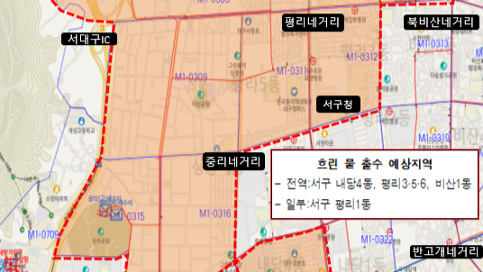 대구 서구 내당동·평리동·비산동 일부, 11월 29일 밤 흐린 물 출수