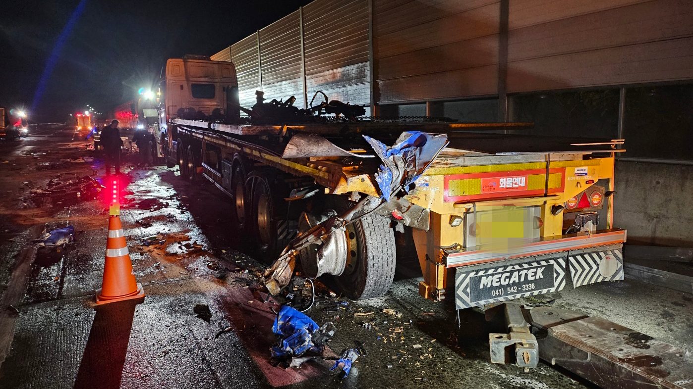 경부고속도로 경주 휴게소 근처에서 트레일러, 화물차 추돌···2명 다쳐