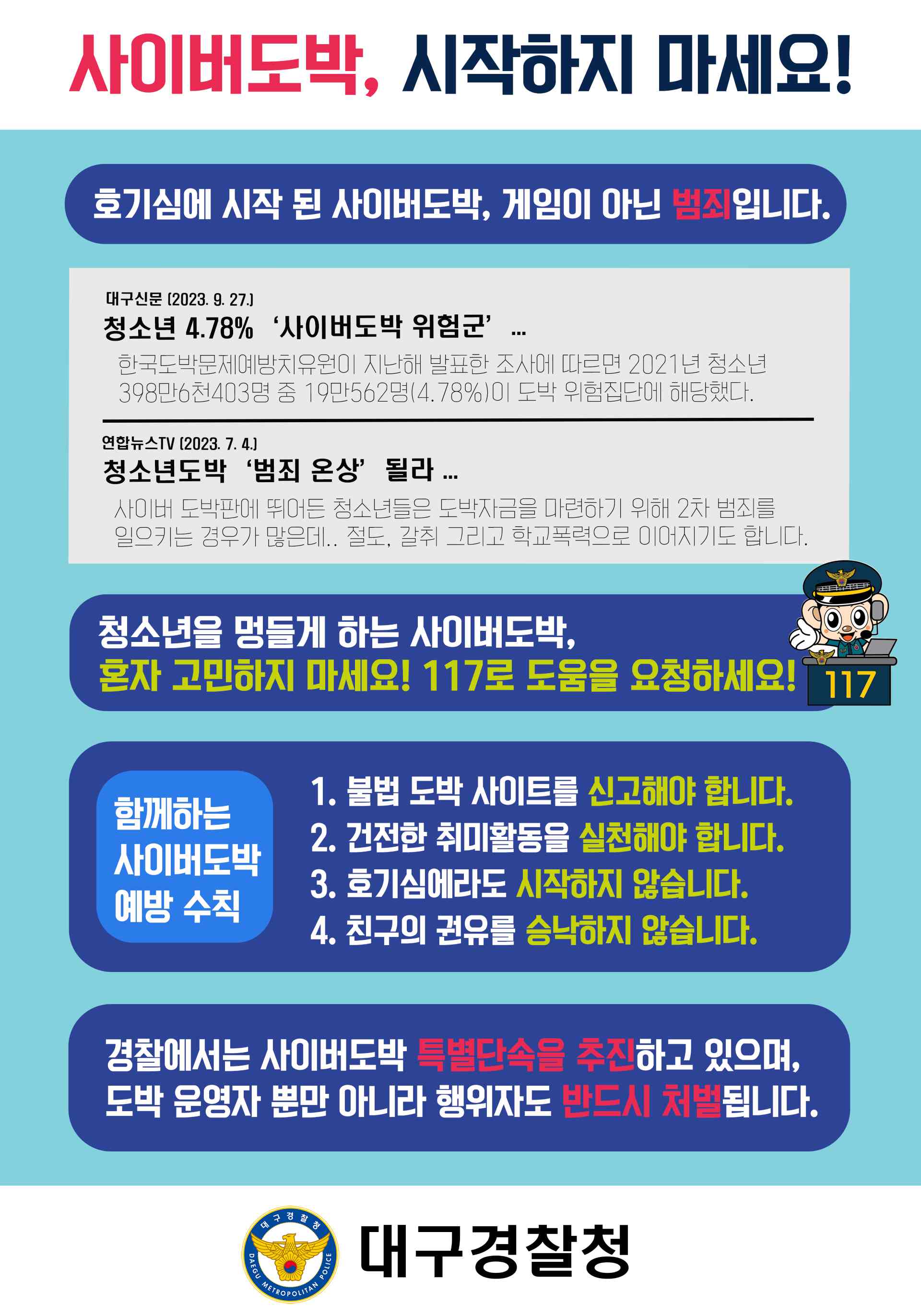 대구 경찰, 청소년 사이버 도박 특별 예방 활동